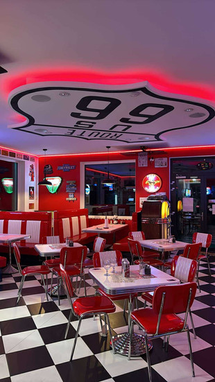 Motel Eldorado is a roadside surprise full of Americana, with vintage furniture, neon lights, and an atmosphere straight out of a mid-century road trip film. Totally unexpected in this part of Europe and absolutely worth the stop.